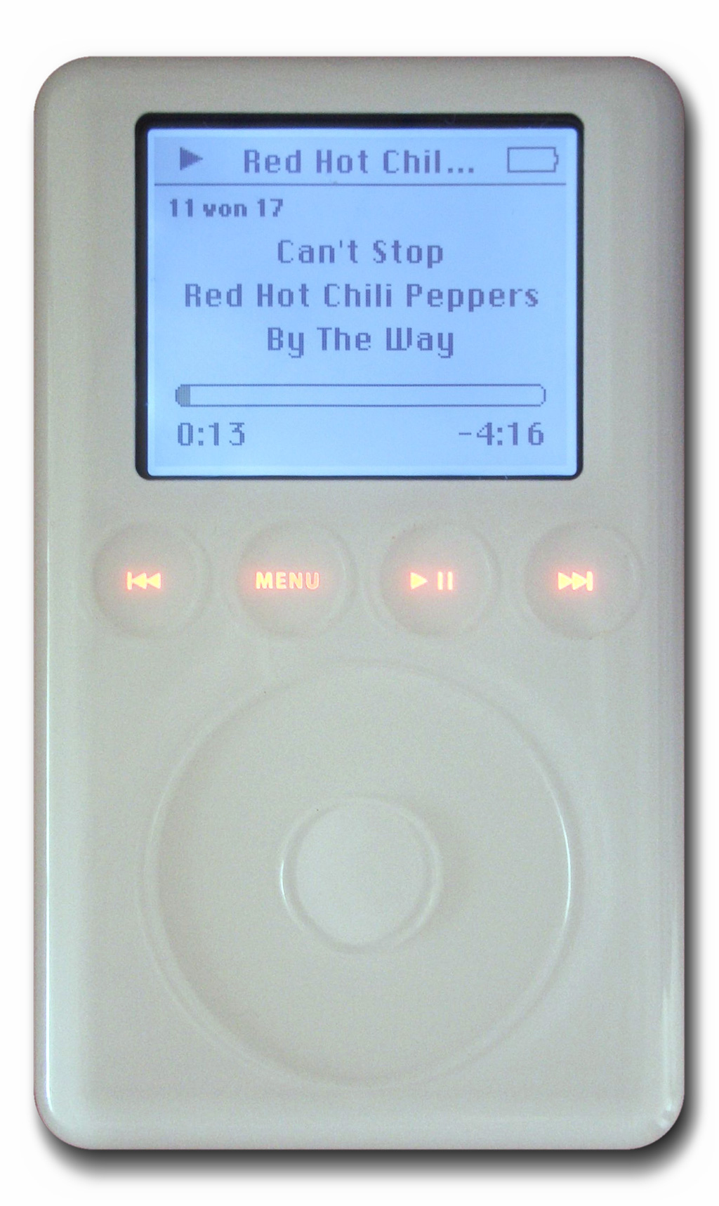 Charcoal later left the menu to Lucida Grande, and it’s now San Francisco’s, after the short tenure of Helvetica Neue. Nevertheless, Apple couldn’t just burrow the legacy typefaces even after the Mac OS X, because of an up-and-coming mobile device named iPod. It had a 2″ monochrome LCD (Liquid Crystal Display) with 160 x 128 resolution and 0.24 mm dot pitch; Chicago had been reused for iPod navigation until the appearance of the iPod with color display. However, Charcoal never made its comeback; Podium Sans under Myriad tag had displaced Chicago for the color display iPod.