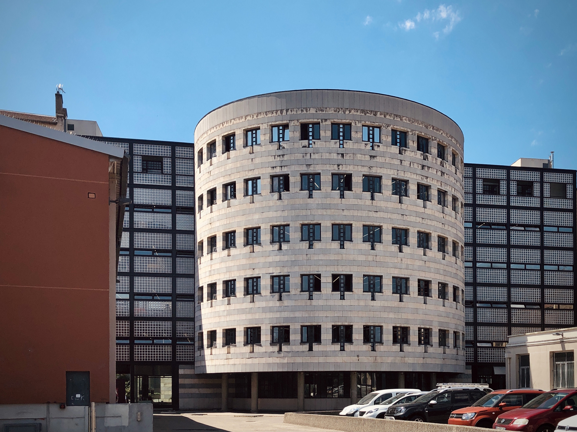 MARIO BOTTA IS a Swiss architect who has designed several buildings in my hometown, Seoul. As far as I remember, there was a brick tower near my home; its red brickwork was remarkable, in the middle of the achromatic vertical forest. As the architect intended, it is truly an urban landmark in one of the most densely built-up areas of the city. After a while, I discovered his other project in Villeurbanne, a satellite town of Lyon; it’s the Maison du livre, de l’image et du son François Mitterrand, which is part of the Médiathèque de Villeurbanne.